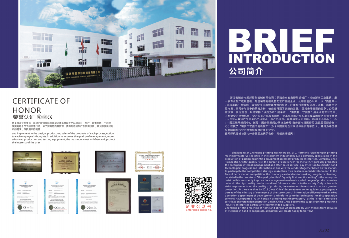 瑞安市振邦印刷機(jī)械有限公司地處浙南工業(yè)重鎮(zhèn),是一家專業(yè)生產(chǎn)外包裝印刷機(jī)設(shè)備及配套產(chǎn)品的企業(yè),主要產(chǎn)品有:柔版印刷機(jī)、模切機(jī)、檢標(biāo)機(jī)、復(fù)卷品檢機(jī)、紙吸管機(jī)分切機(jī)系列不干膠印刷設(shè)備等;是中國印刷技術(shù)協(xié)會會員單位。